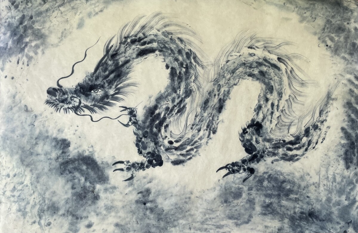The Ryu-jin series explores the spiritual symbolism of dragons in Japanese mythology, embodying themes of wisdom, creation, and nature through traditional techniques and natural pigments.