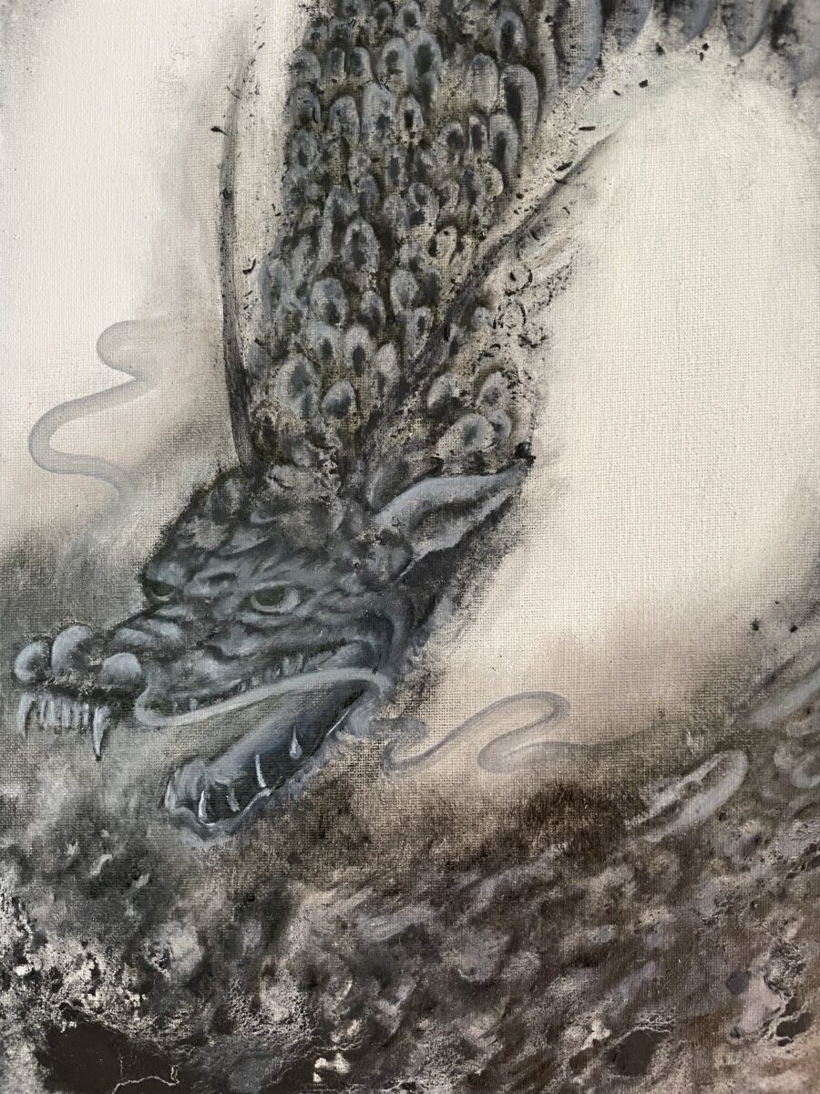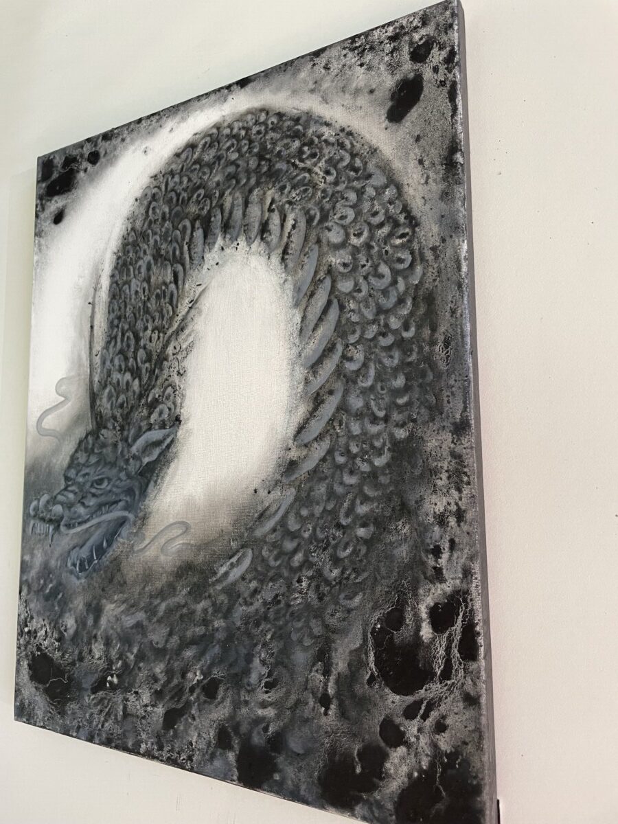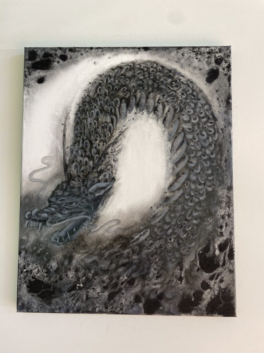Discover the empowering presence of the Black Dragon, a symbol of fearlessness, inner strength, and transformation. This original painting by Yao Mikami invites you to overcome your fears and step into your true power.