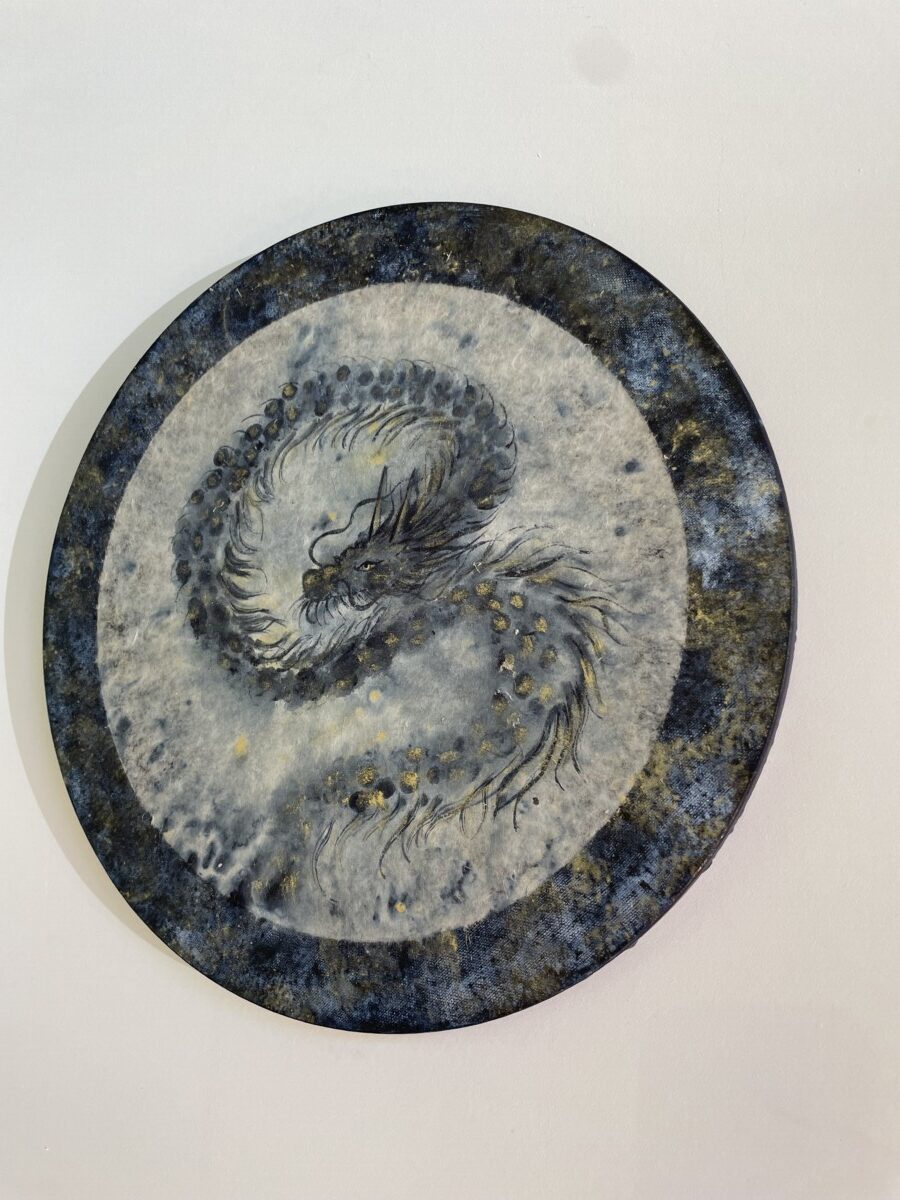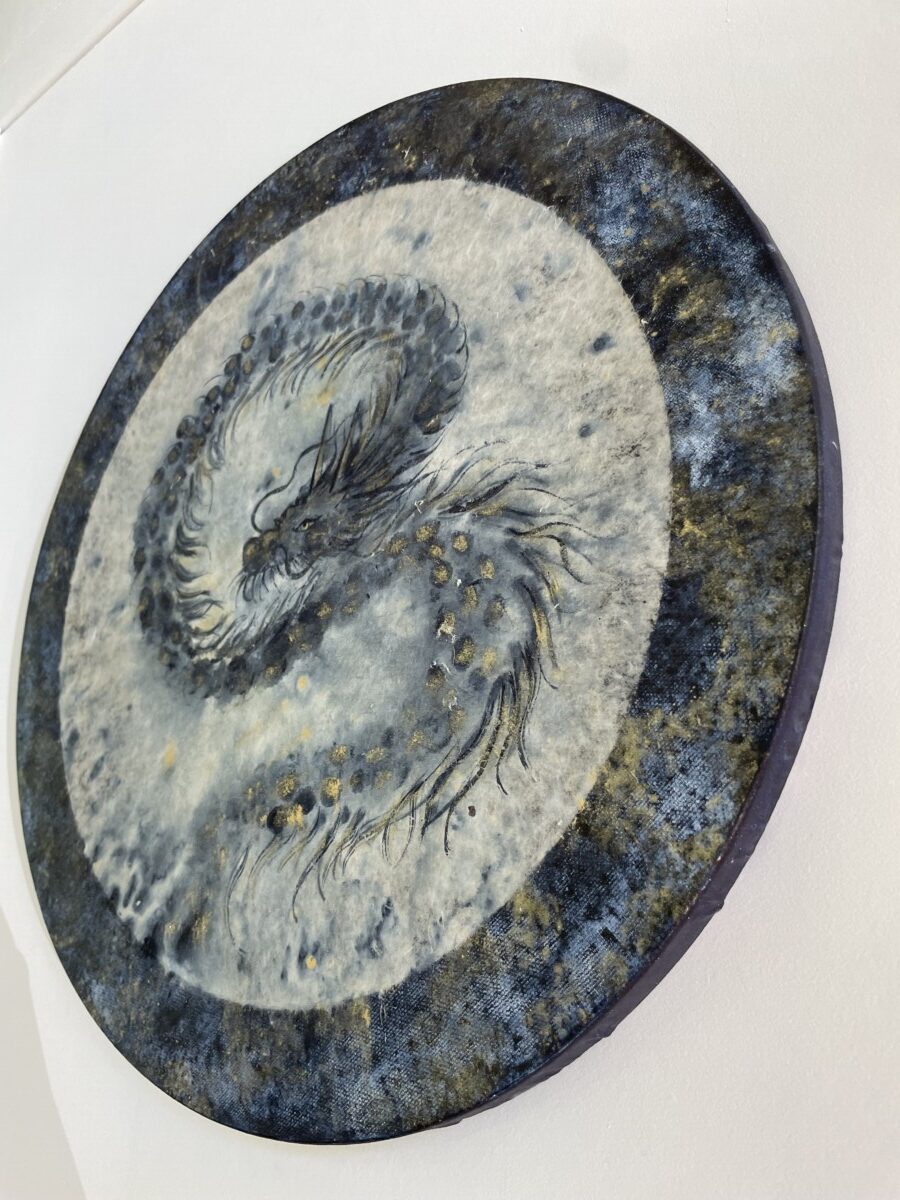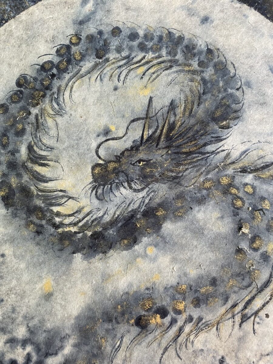 Radiant Dragon (麗龍) celebrates the beauty of light and vibration. Painted with indigo and mica on handmade Japanese paper, this luminous work embodies the dragon’s radiance — the power of inner light to illuminate the world.