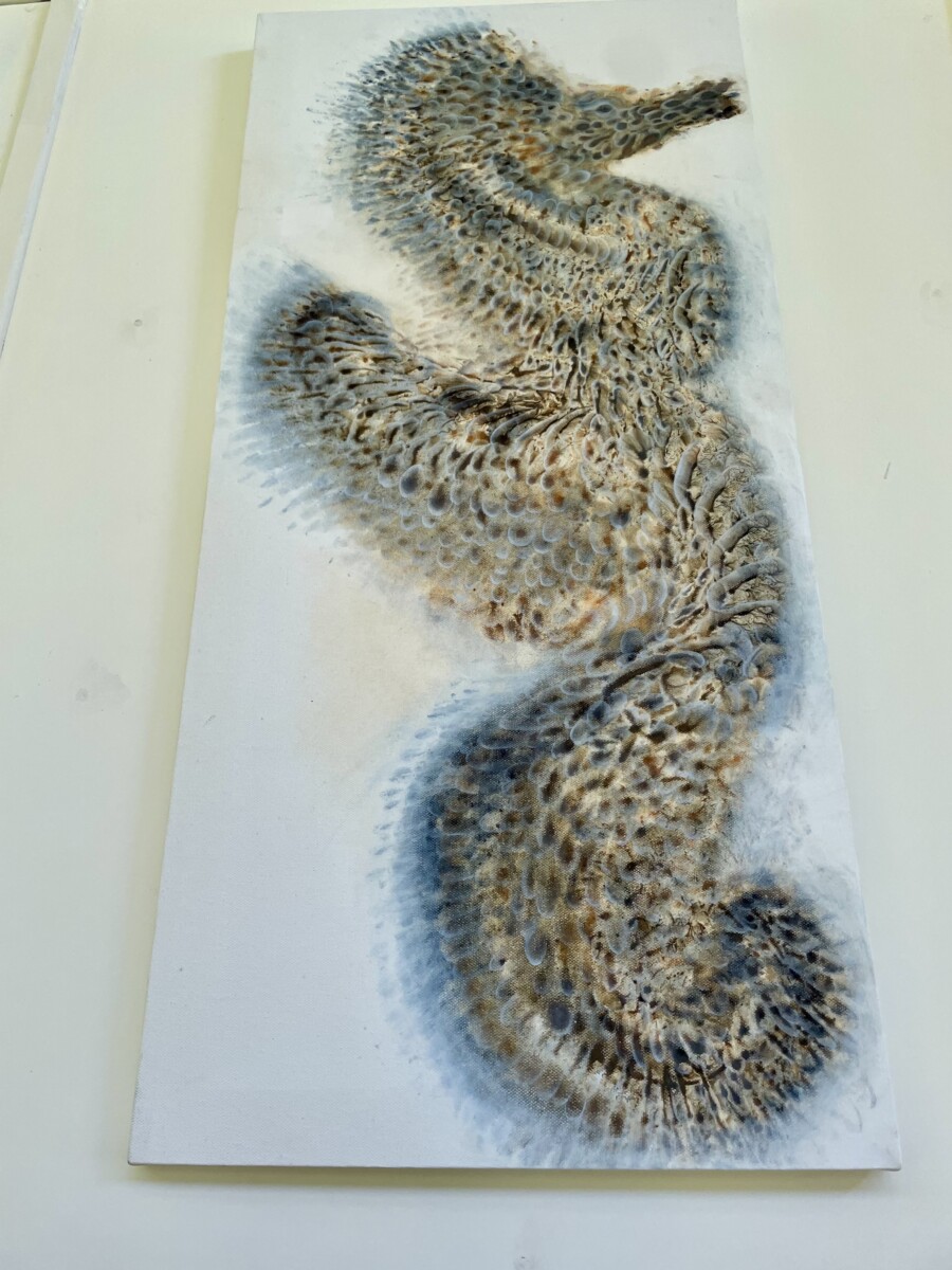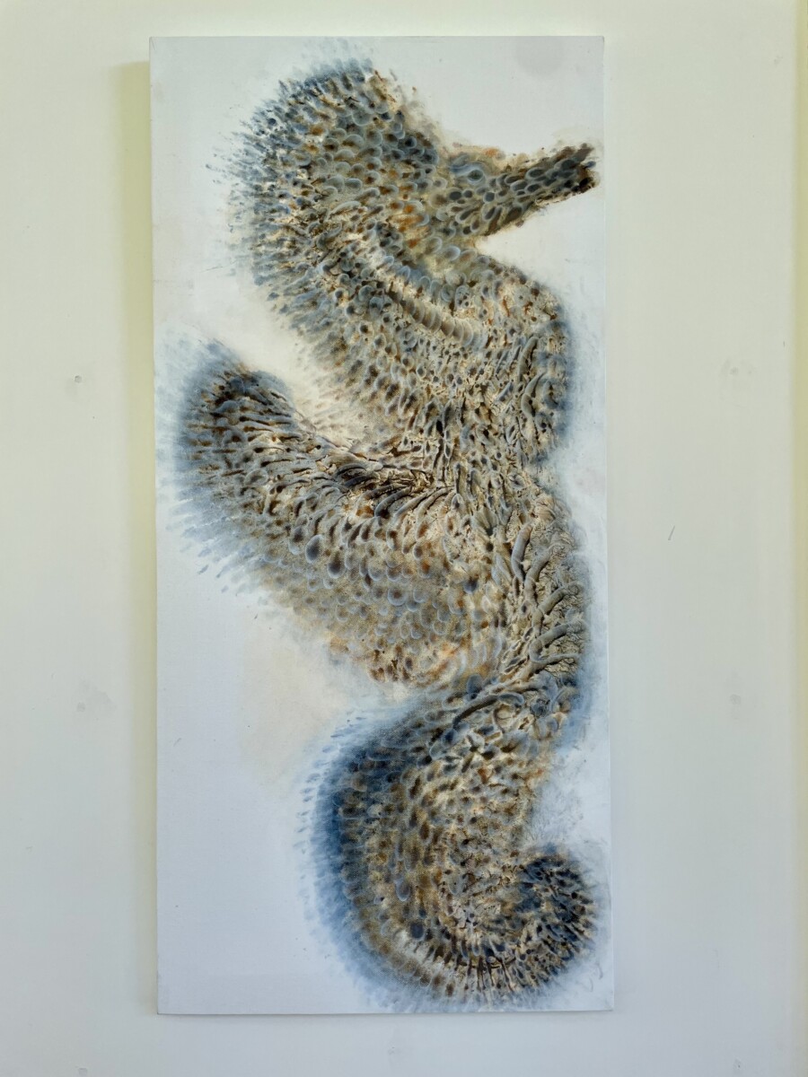 From my imagination comes the Sea Dragon — a mystical creature of the ocean, part seahorse, part dragon, and perhaps even touched by the wind to fly. This ancient being has existed in many forms throughout time, and I have brought it to life on canvas using raw natural pigments, indigo pigment, and oil. Each brushstroke celebrates the mystery of the deep sea and the enduring power of mythical creatures. Original painting on canvas, ready to inspire wonder in any space.